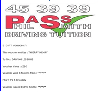 Phil Smith Driving Tuition E-Vouchers make fantastic and ultimately rewarding gifts for family and friends at Christmas, Birthdays or any special occasion. They are available to the following values: